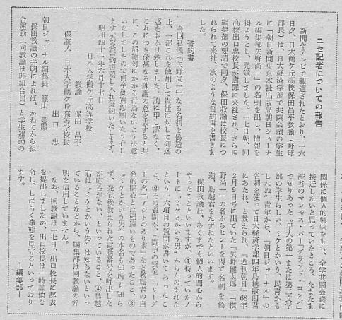 1968・5・25 秋田明大以下15名(経済学部学生会執行部および有志活動家)処分発表