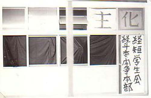 全共斗本部も占拠と同時に設置された。 1968-6-12 深夜 「敵襲!敵襲!」 夜中は閉鎖施錠です。